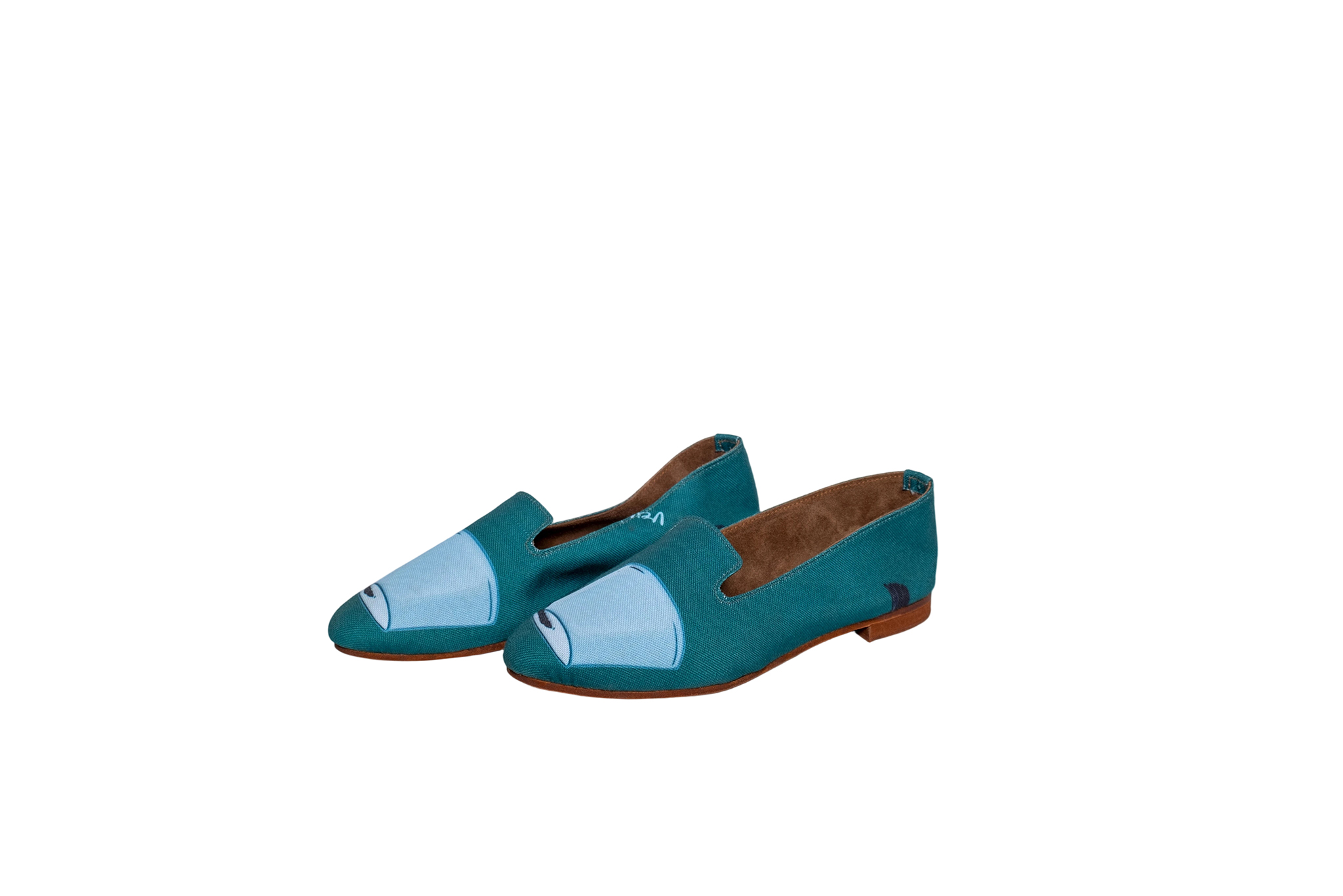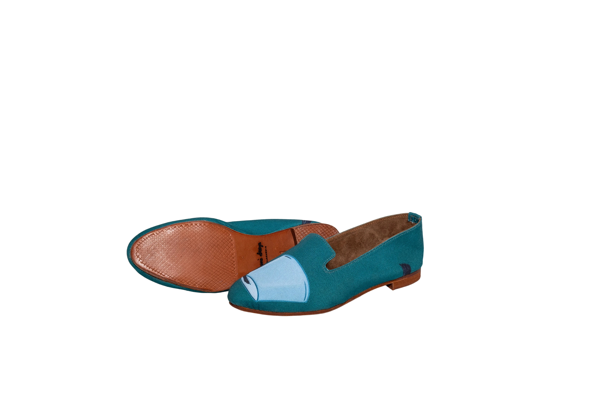 Green Tarbouche Moccasins, one-of-a-kind, reproducible in all colors and sizes