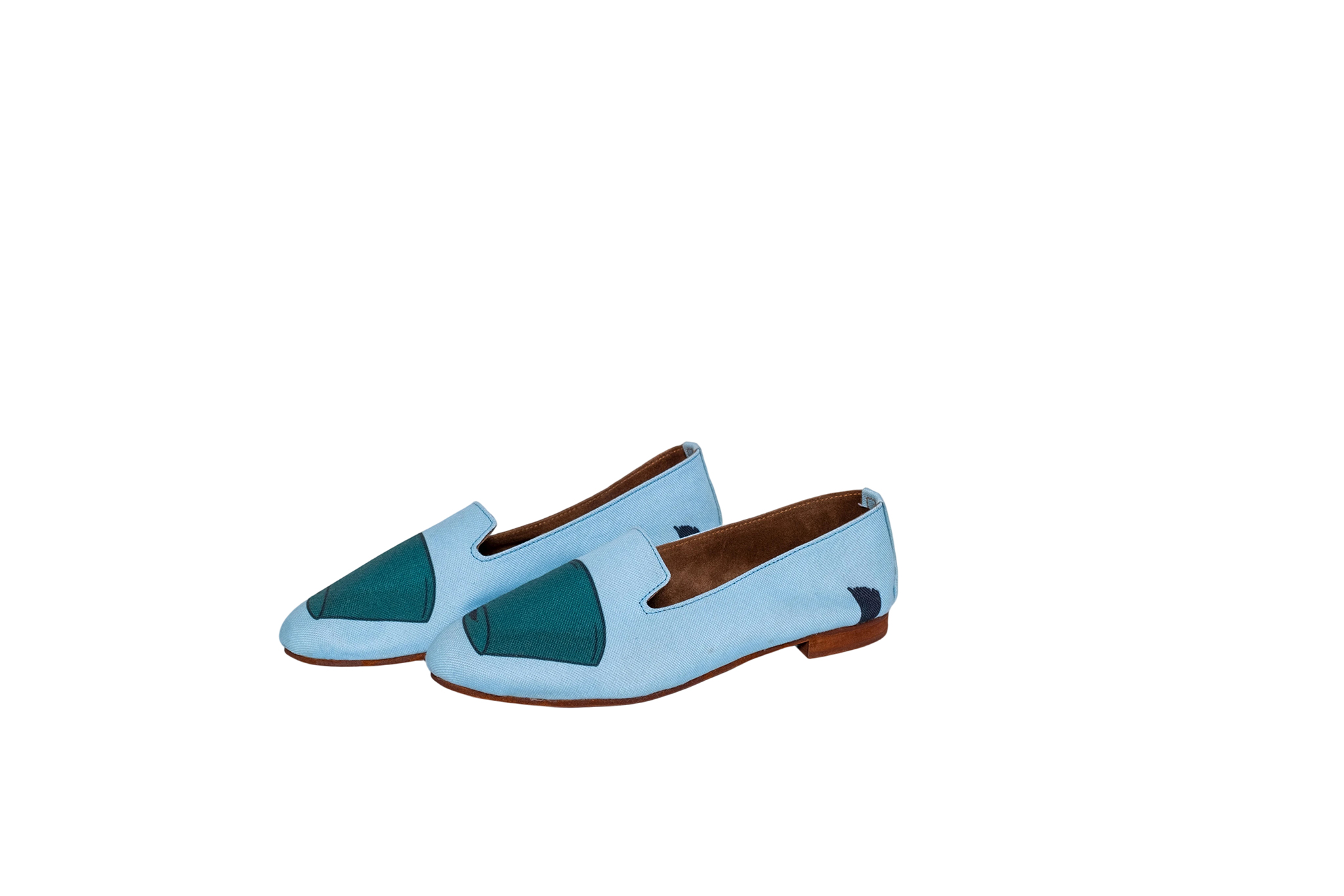Light Green Tarbouche Moccasins, one-of-a-kind, reproducible in all colors and sizes